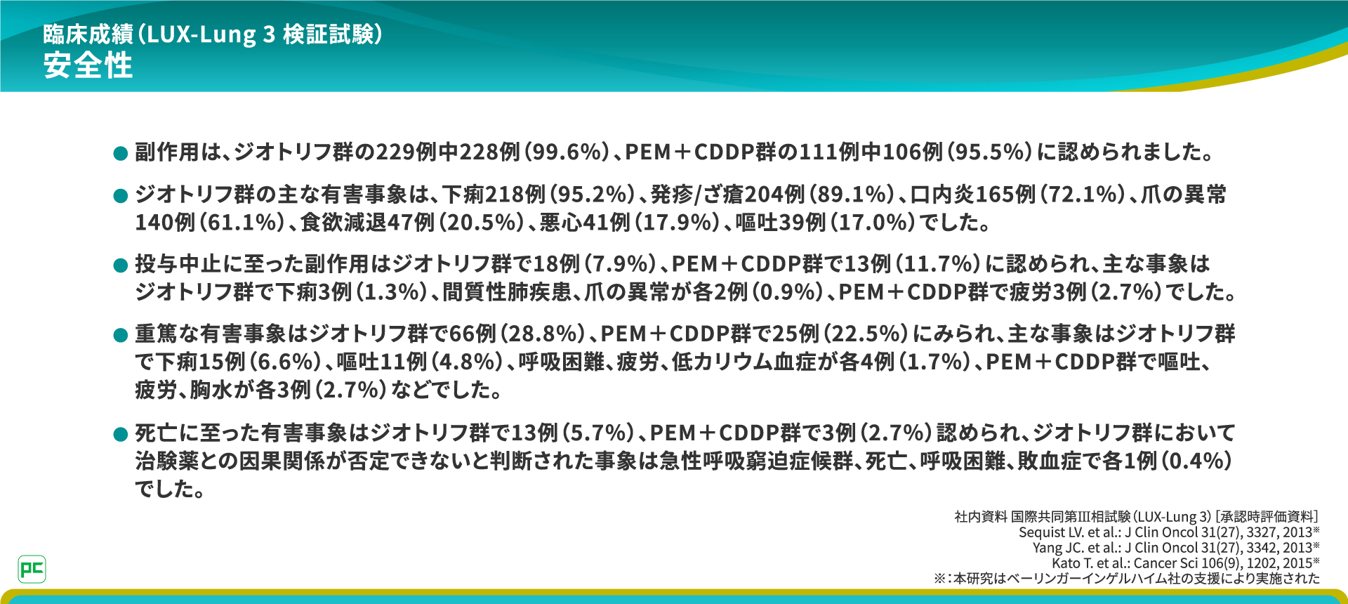 本研究はベーリンガーインゲルハイム社の支援により実施された。 - 社内資料 国際共同第Ⅲ相試験(LUX-Lung 3)[承認時評価資料]