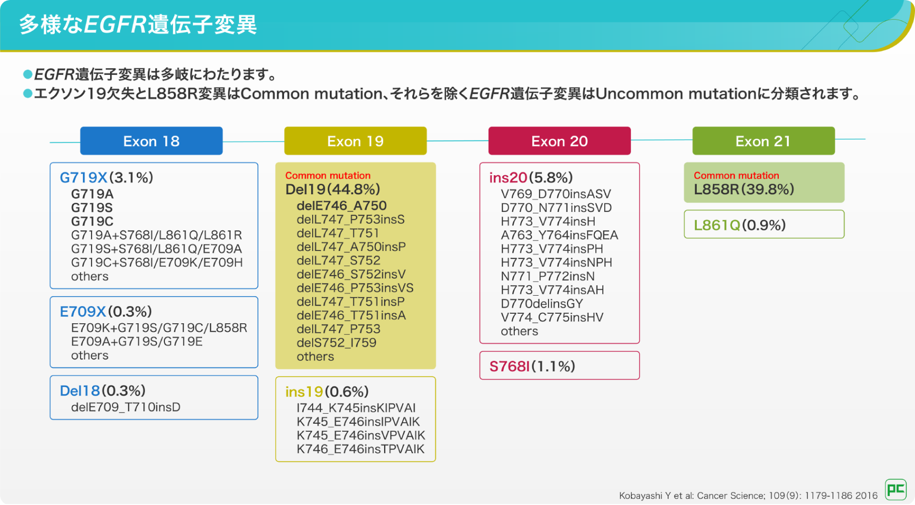 こうした報告からは、日常診療においてUncommon mutationを含めた変異を十分に拾い上げられていない可能性があると考えられます。