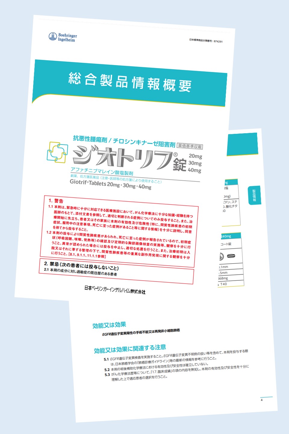ジオトリフについて、開発の経緯や特性、組成・性状、用法及び用量、用法及び用量に関連する注意、重要な基本的注意などを掲載した資料です。服用中の気になる点や、服用中に注意するべき症状が現れた場合には、医師にご相談ください。