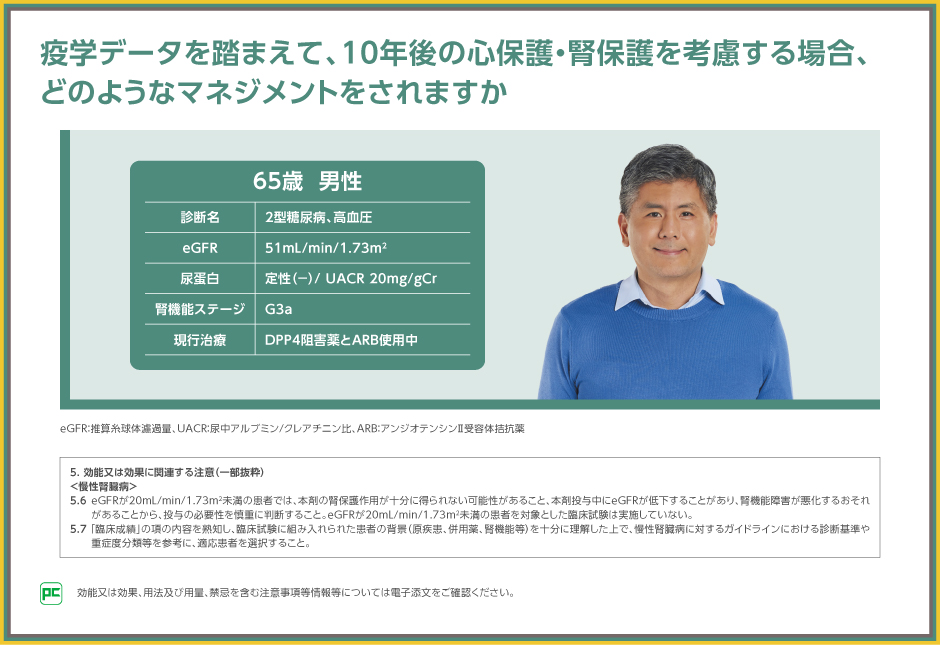 2型糖尿病があり、腎機能が低下した正常アルブミン尿の方に対する10年後の心腎イベントを考慮したマネジメントとは