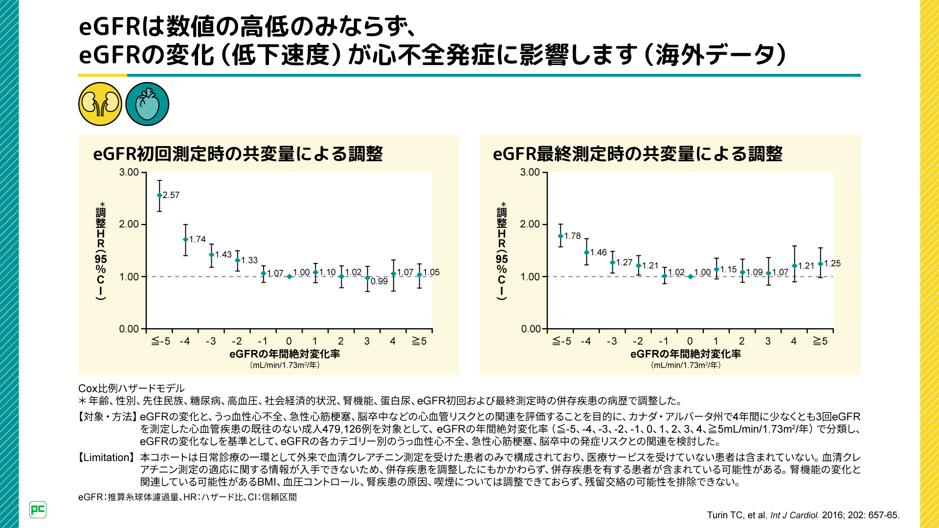 将来の心血管イベントリスクを評価する上では、eGFRスロープを見ることも重要なんだね。