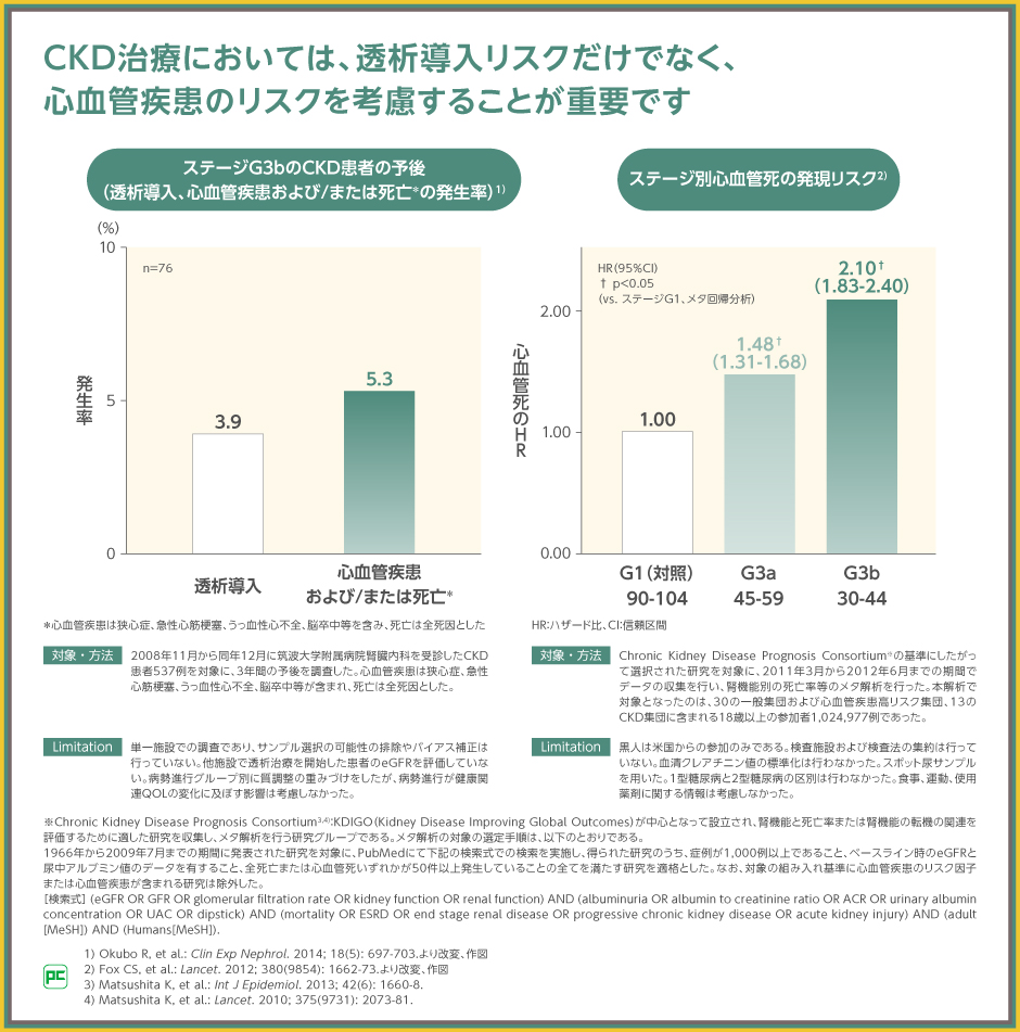 慢性腎臓病では、透析導入前に心血管疾患を発現し予後が悪化する可能性があります。