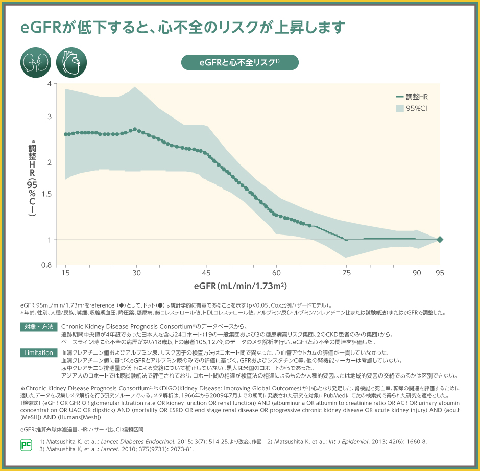 心不全の発症リスクは腎機能の低下と相関します。