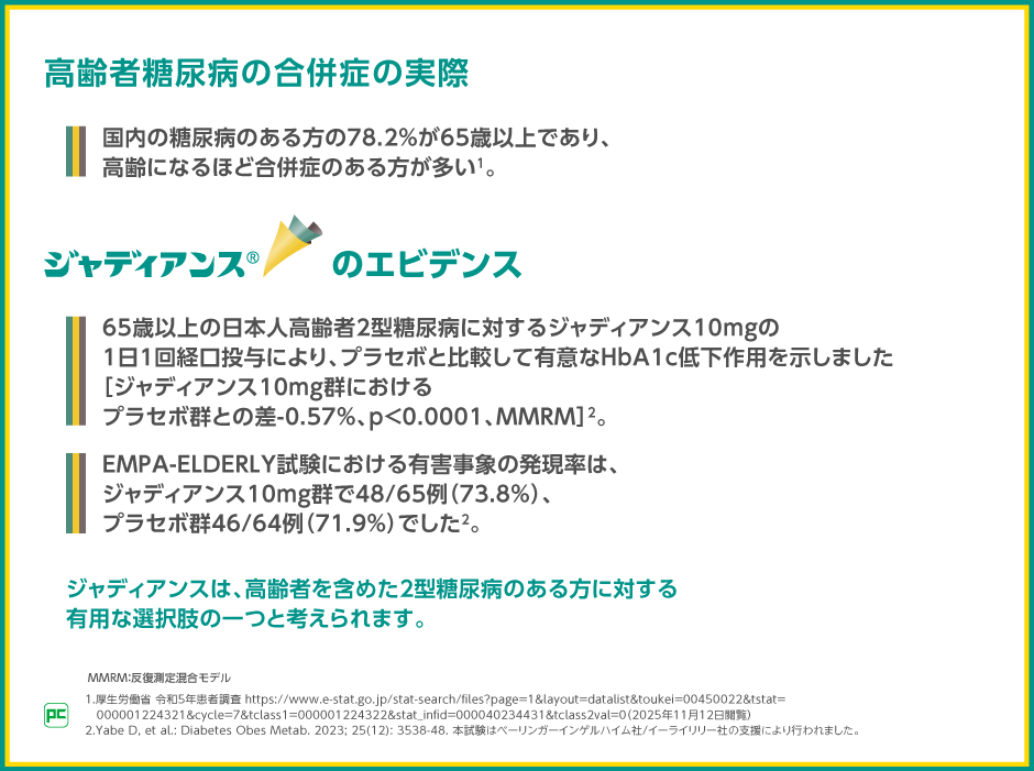 高齢者糖尿病の合併症の実際とジャディアンスのエビデンス