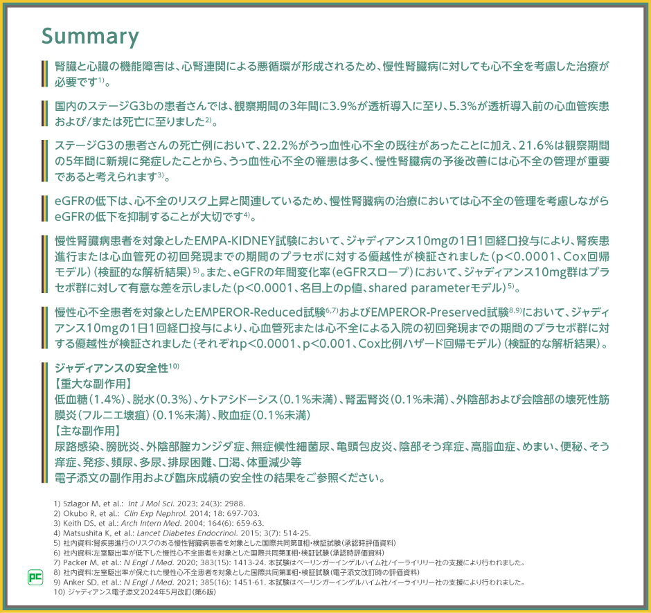 慢性腎臓病治療において心不全管理を考慮することの重要性と、ジャディアンスの有効性についてご紹介します。