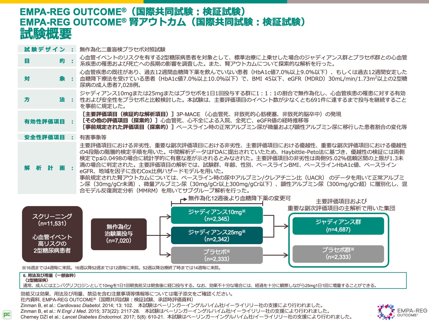 - 社内資料. EMPA-REG OUTCOME®(国際共同試験:検証試験、承認時評価資料)