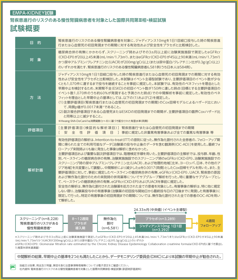 ジャディアンスのエビデンス ③腎疾患進行のリスクのある慢性腎臓病患者を対象とした国際共同第Ⅲ相・検証試験(EMPA-KIDNEY試験)