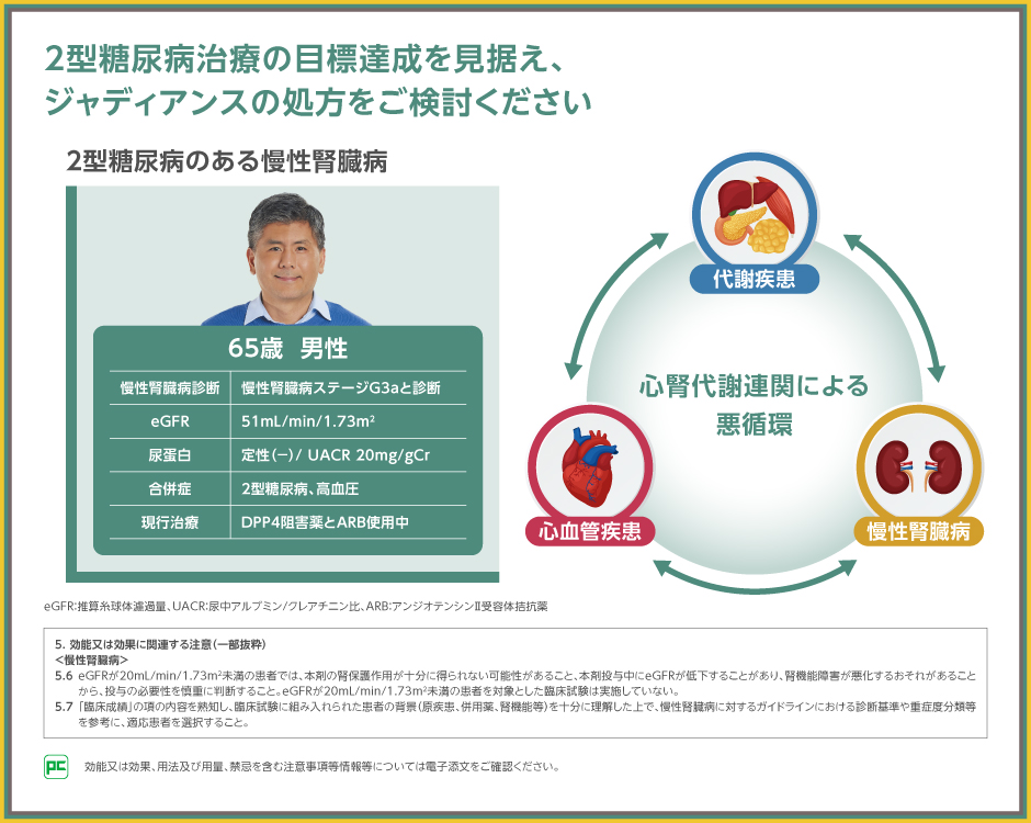 早期からの腎機能を考慮した糖尿病治療の一つとして、ジャディアンスの処方をご検討ください。