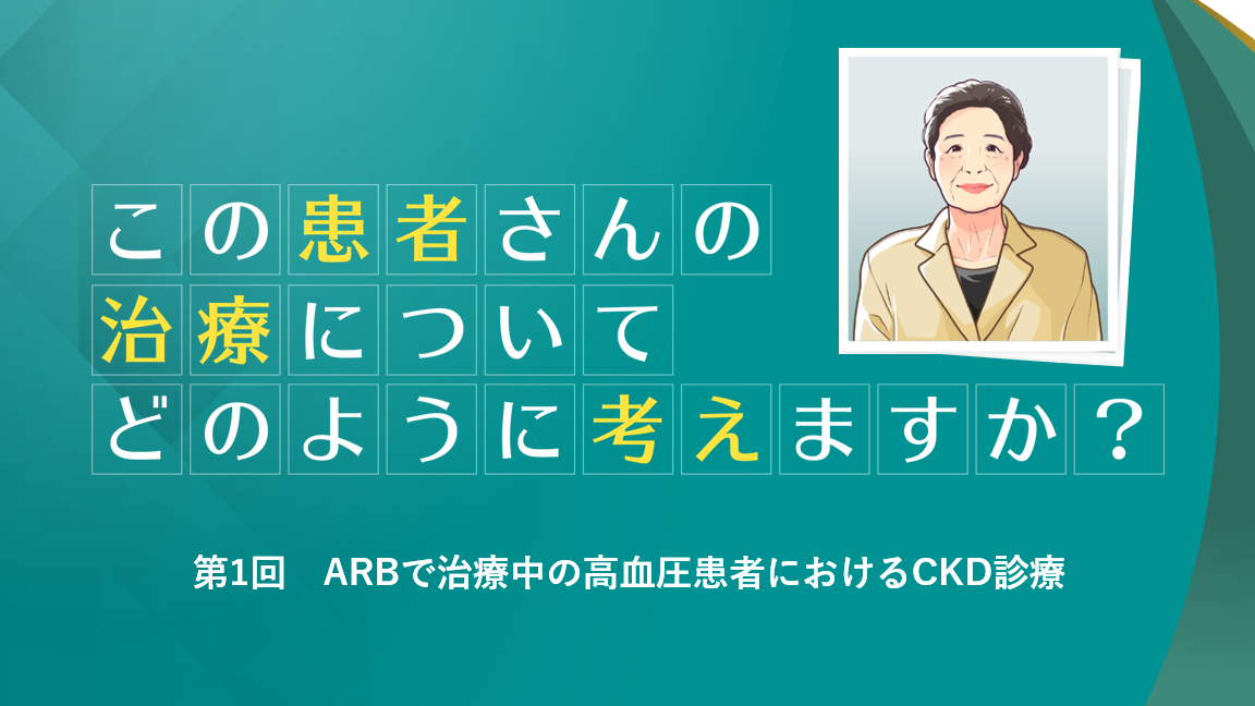 この患者さんの治療についてどのように考えますか?ARBで治療中の高血圧患者におけるCKD診療(静止画)