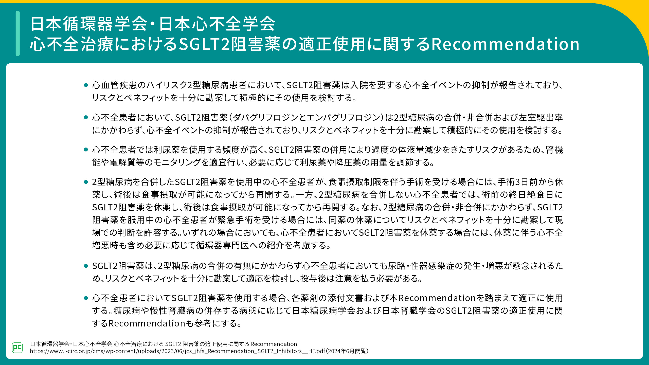 - 日本循環器学会・日本心不全学会 心不全治療における SGLT2 阻害薬の適正使用に関する Recommendation