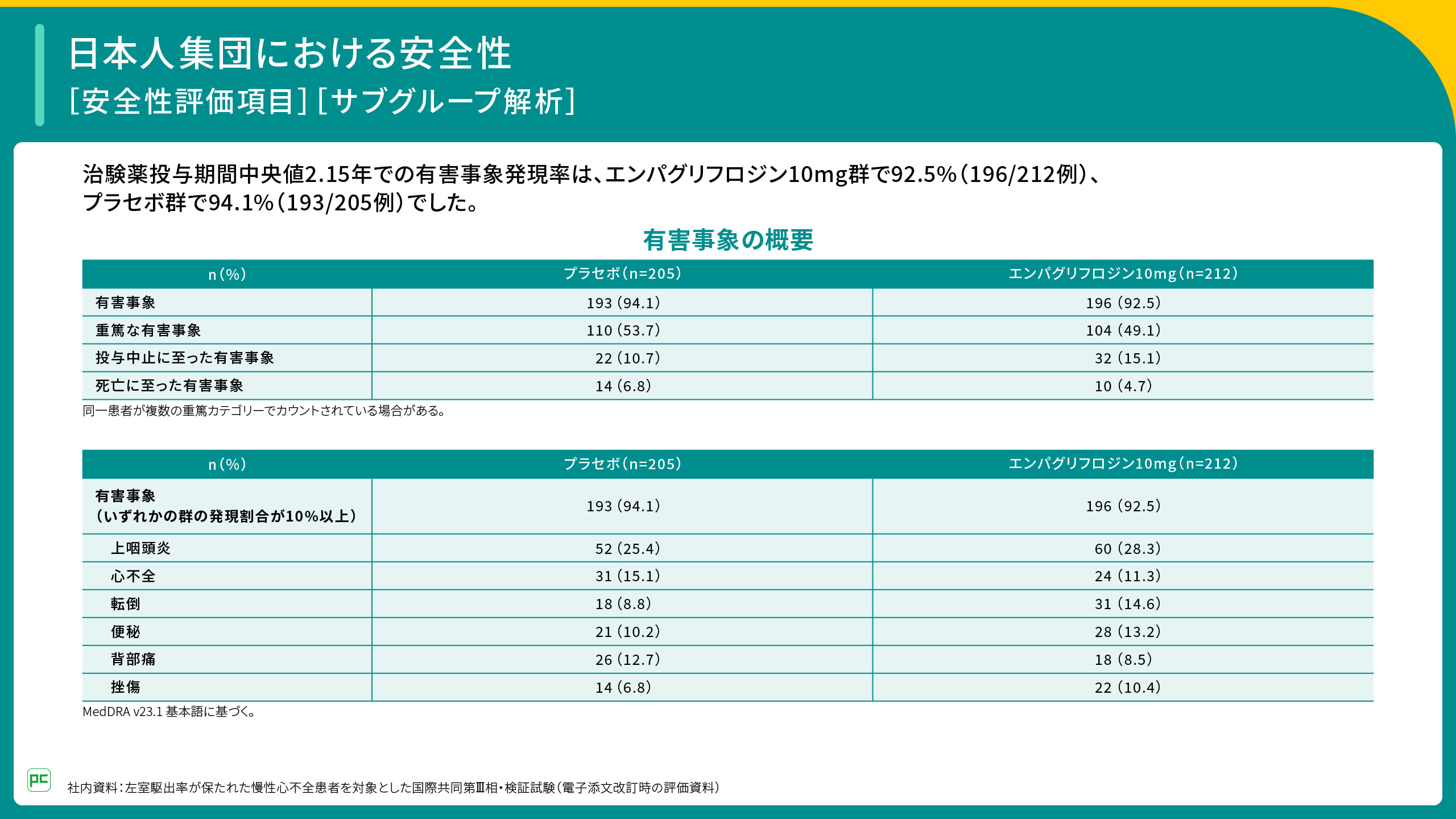 - ジャディアンスのEMPEROR-Preserved試験ではさまざまなサブグループ解析が実施されており、こうした結果から、ジャディアンスはLVEFを問わず日本人患者の心不全マネジメントに有用な薬剤のひとつであると考えられる5)