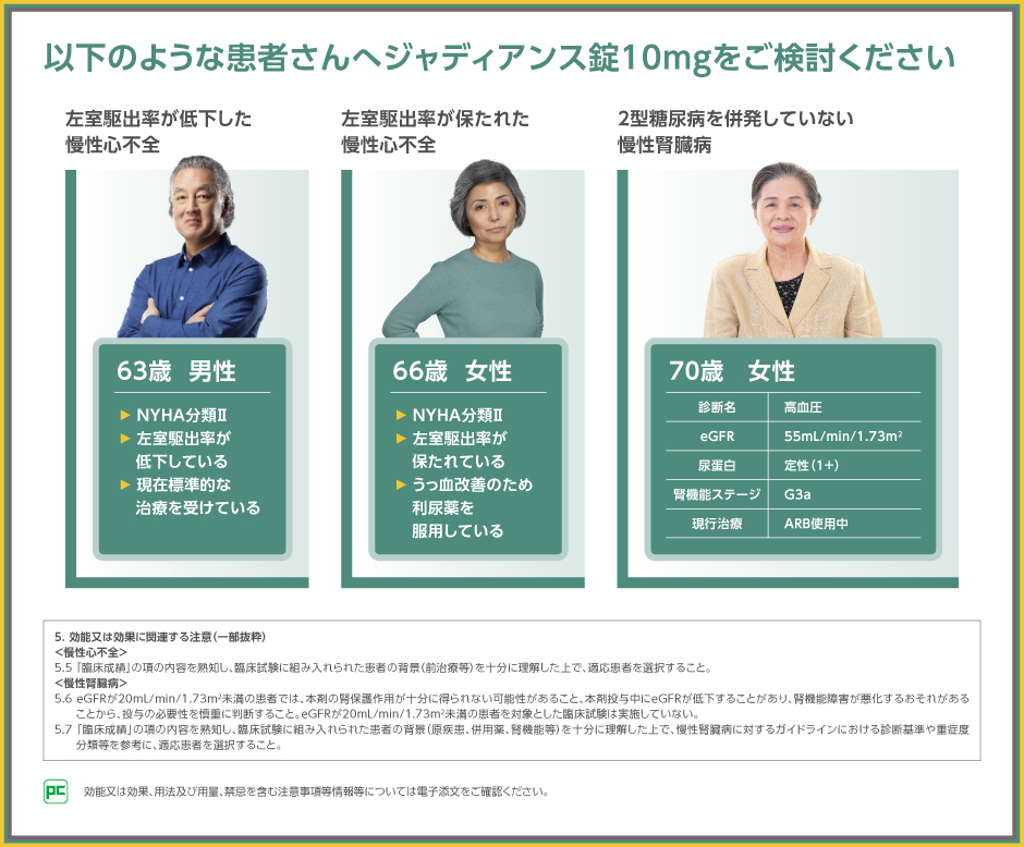慢性心不全※1や慢性腎臓病※2の患者さんの治療にジャディアンス錠10mgの処方をご検討ください。