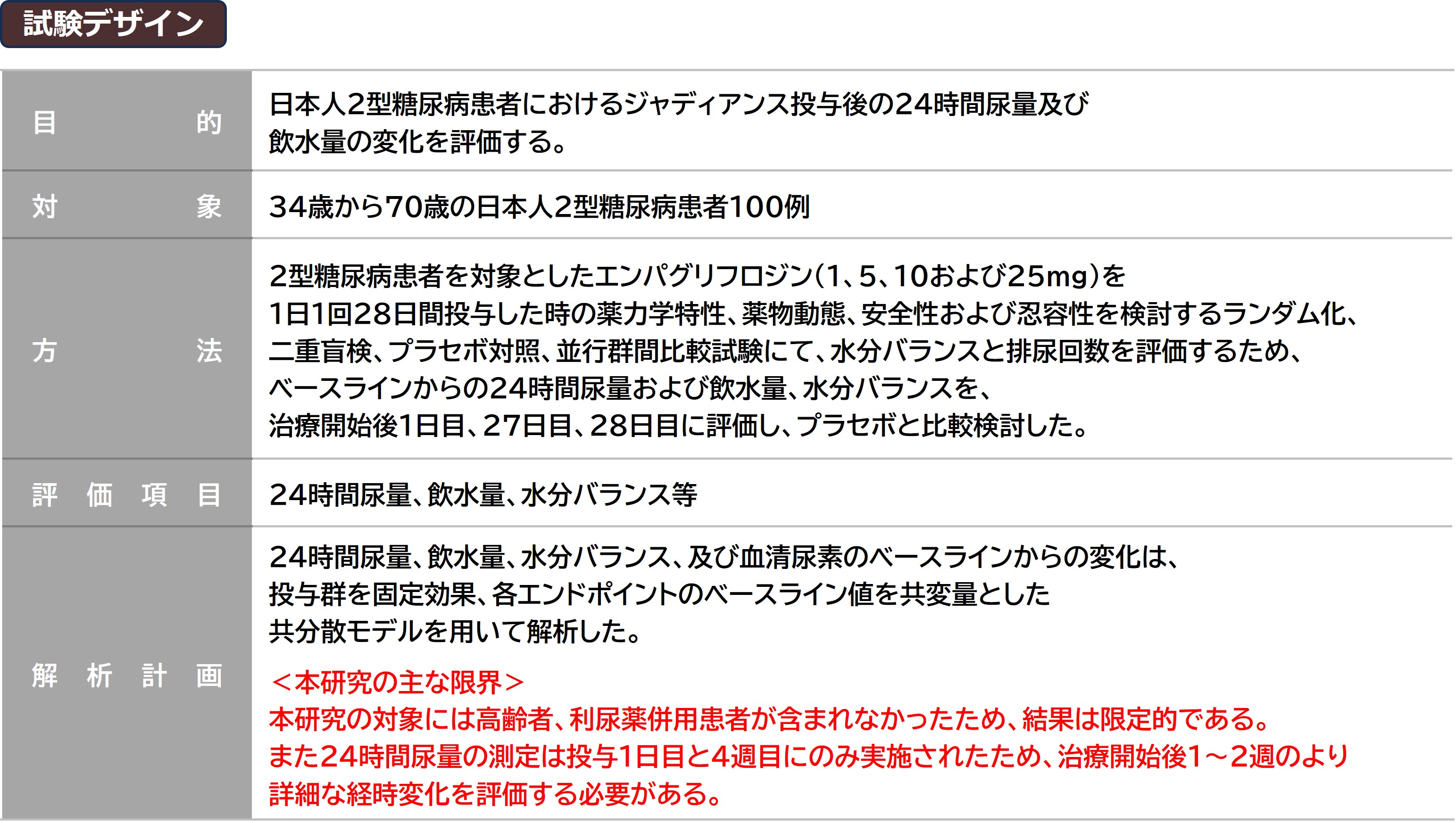 日本人2型糖尿病患者24時間尿量と飲水量評価試験安全性