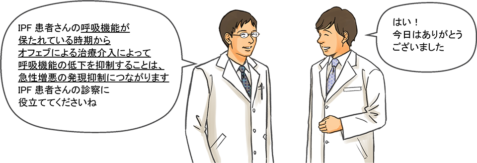 したがって、治療を必要とするIPFをはじめとするIIPs患者さんに対して難病医療費助成について案内いただくことが、患者さんが治療を前向きにご検討いただくことにつながると思います。
