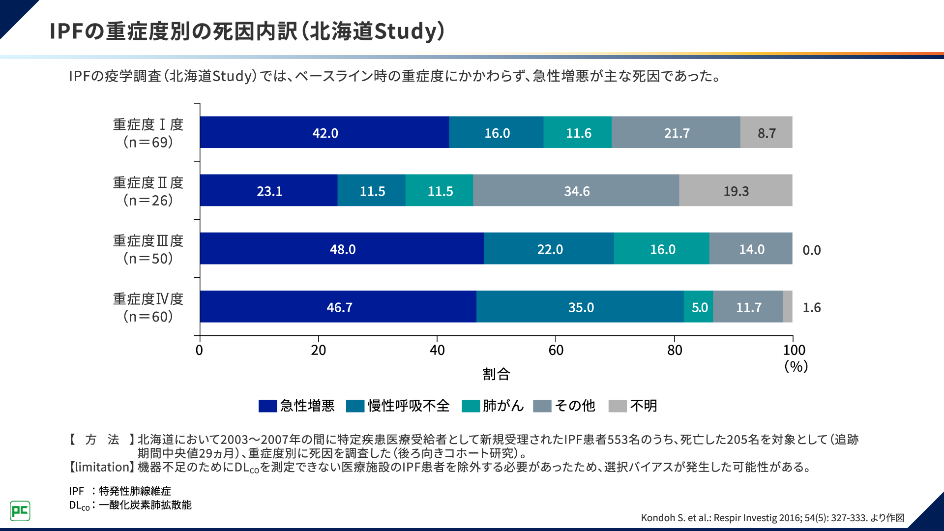 図3 IPFの重症度別の死因内訳(北海道Study)