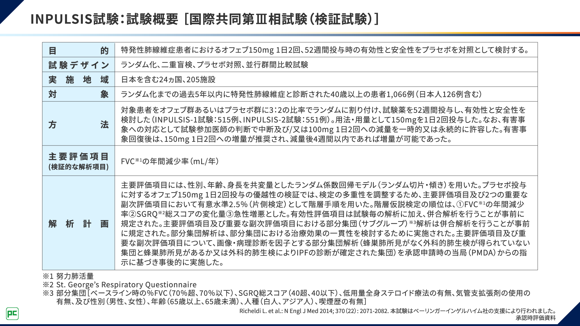 INPULSIS試験は、同一デザインである2つの試験、INPULSIS-1試験とINPULSIS-2試験で構成されています。