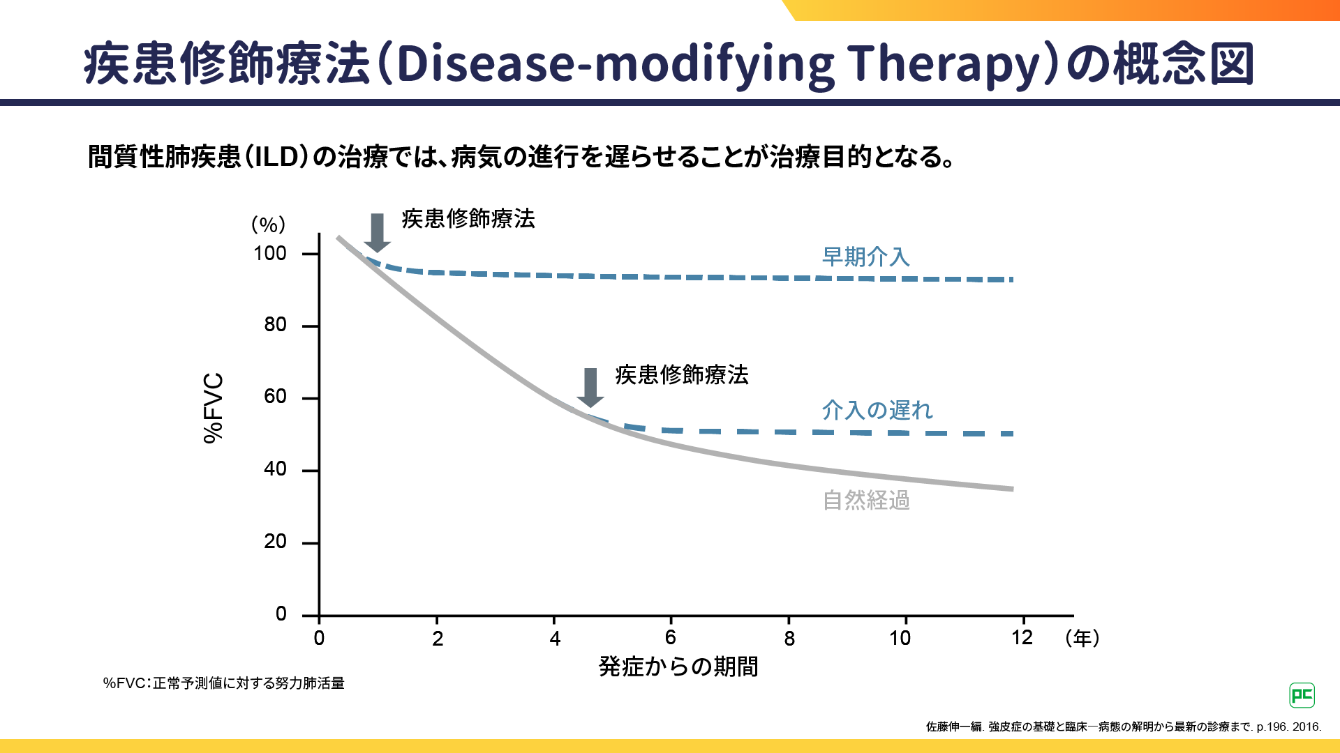 治療介入が遅れた場合は、機能予後に対する好ましい影響は限定的となりますが、早期に治療介入を行えば、呼吸機能の低下を早い段階で阻止、もしくは遅らせることが期待できます(図4)6)。