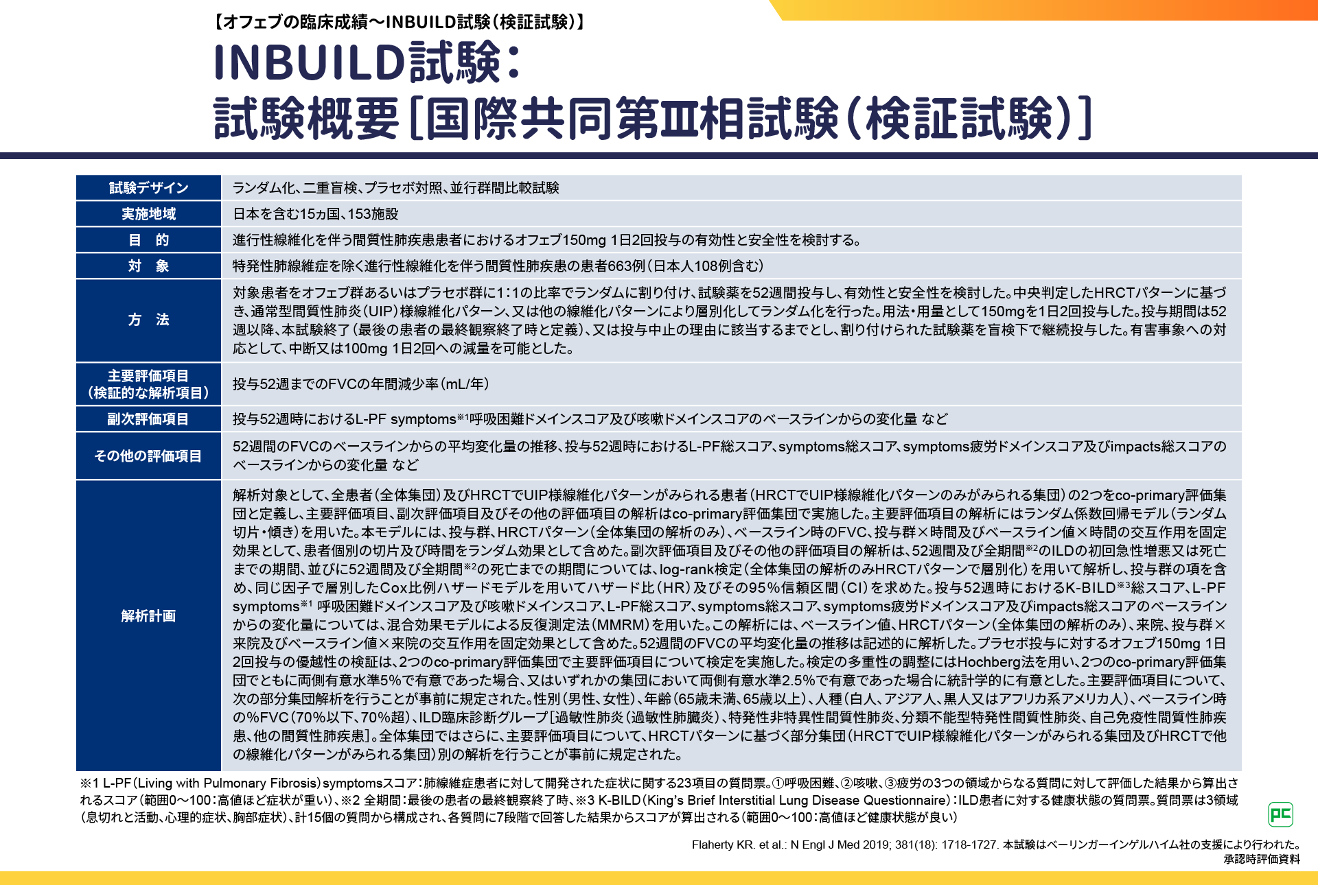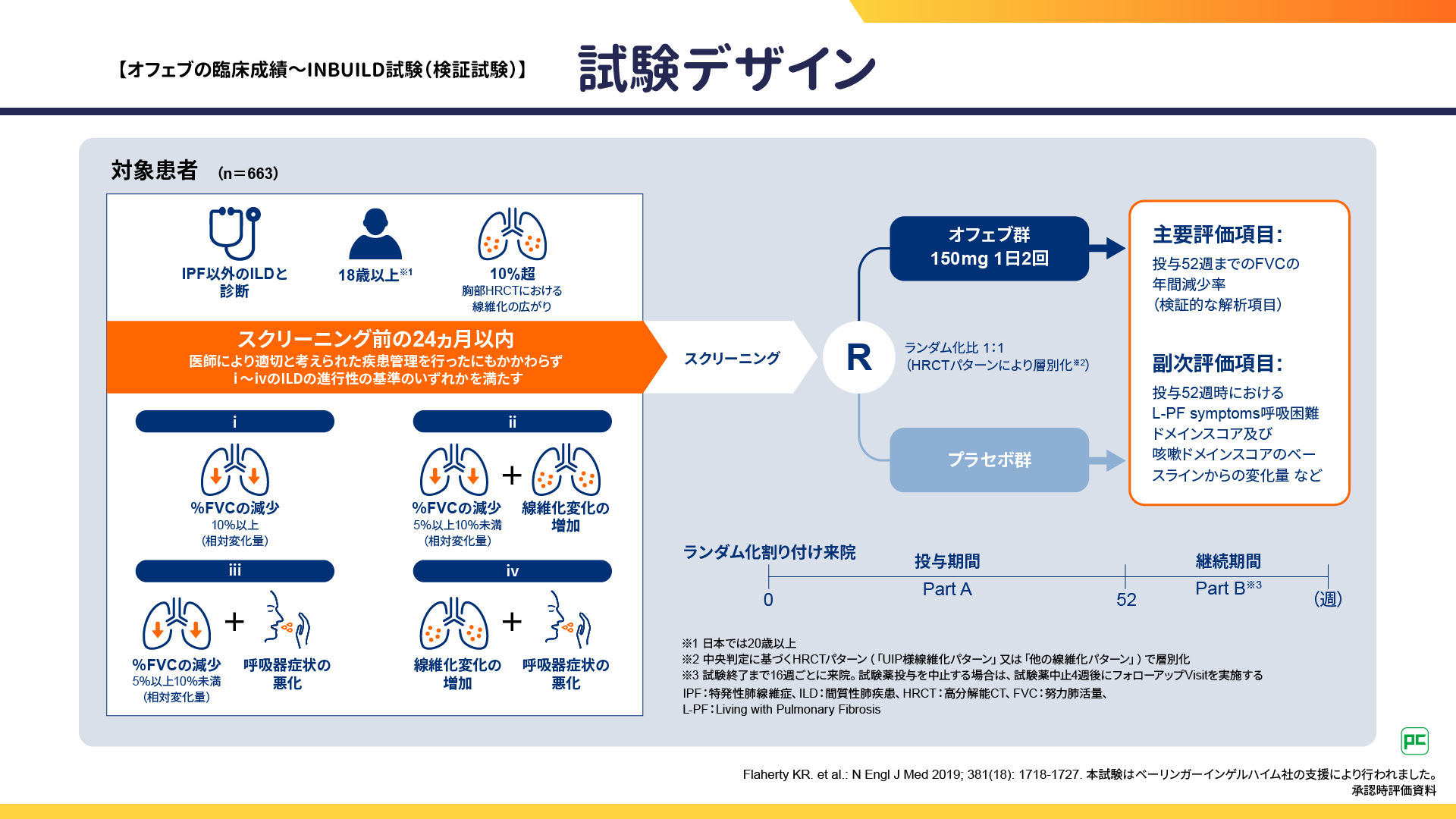 PF-ILDの適応については、国際共同第Ⅲ相試験INBUILD試験で検討されました(図5)4, 5)。