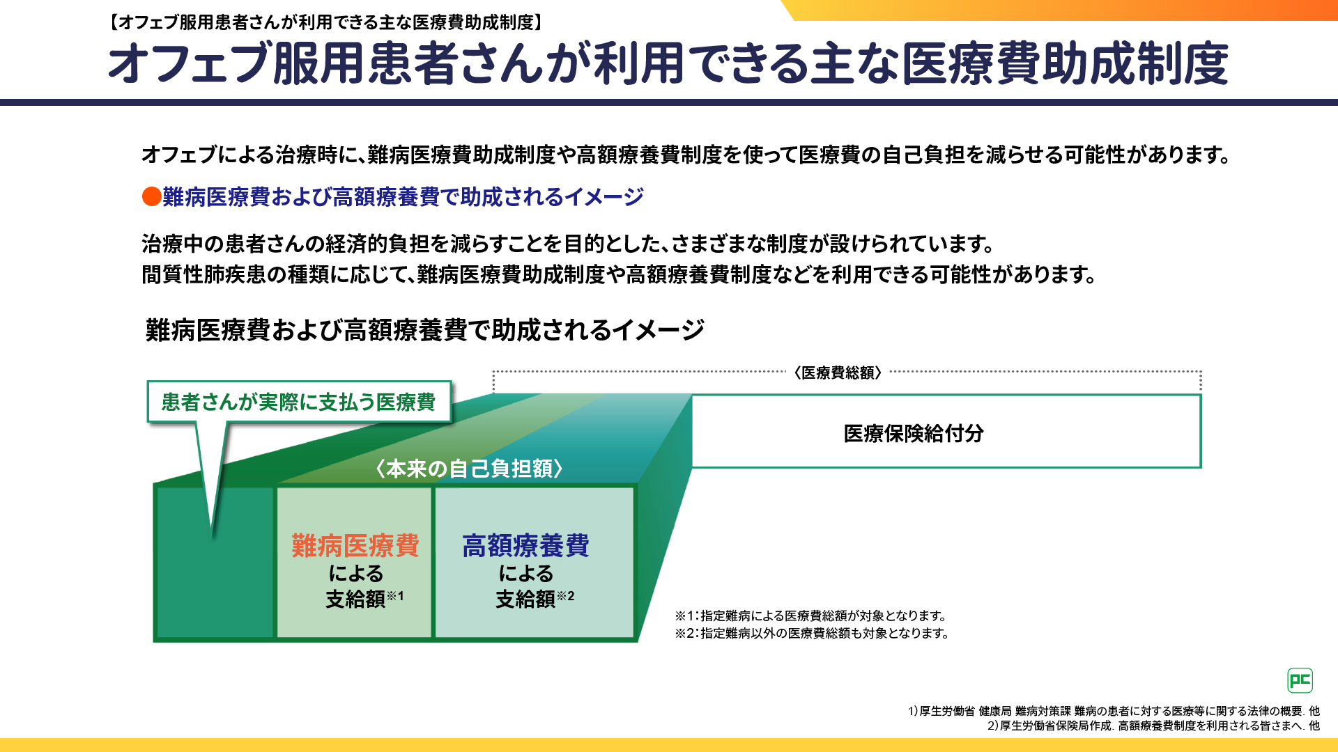 医療費を負担に感じている患者さんに対しては、オフェブの患者さん向け資材(図13)を示しながら、医療費助成制度についてこれまでに話を聞いたことがあるか確認します。患者さんが医療費助成制度について話を聞いたことがないようであれば、オフェブ服用患者さんが利用できる医療費助成制度について案内しましょう。