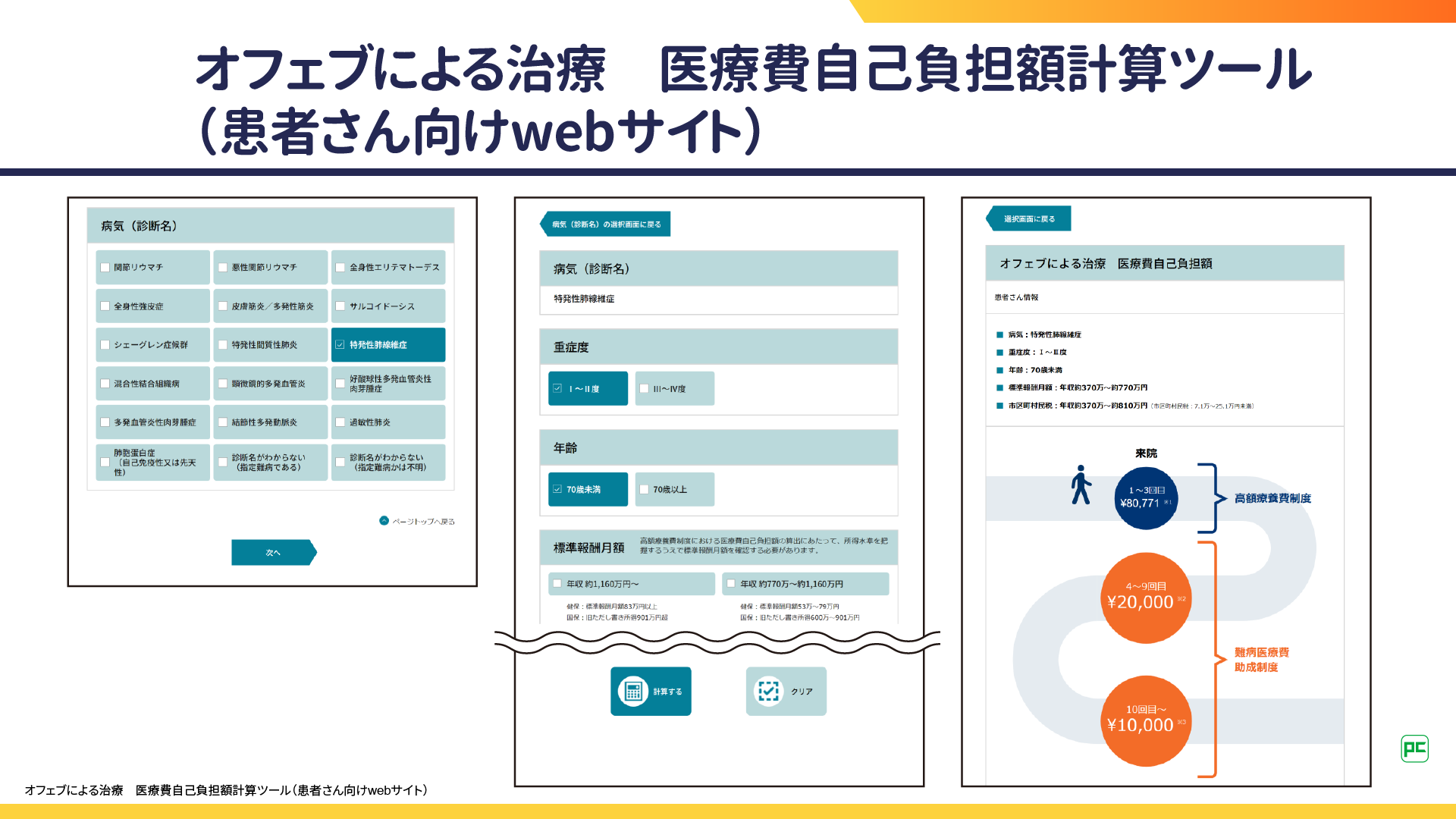 オフェブ服用患者さんに治療にかかる医療費の目安について説明する際の参考として、本ツールを活用するとよいでしょう。