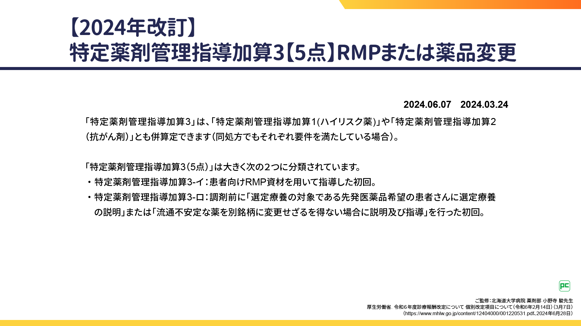 令和6年度の診療報酬改定では、「特定薬剤管理指導加算3」が追加されました。