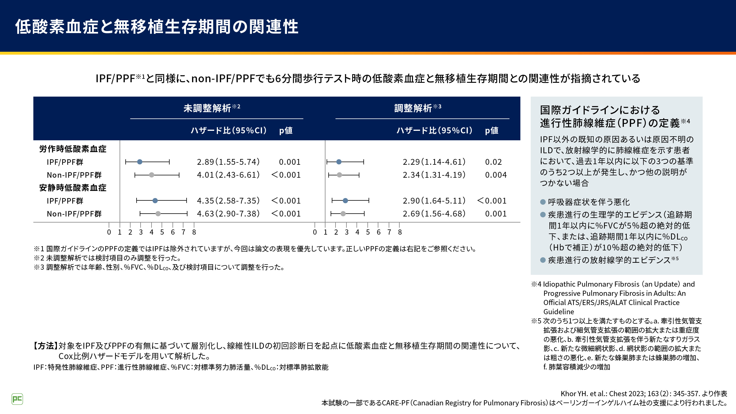 そのほかにも、拡散障害や肺高血圧症といった併存症の推定や呼吸リハビリテーションの効果判定なども、IIPs患者さんに対する6分間歩行テストの実施意義として挙げられます。