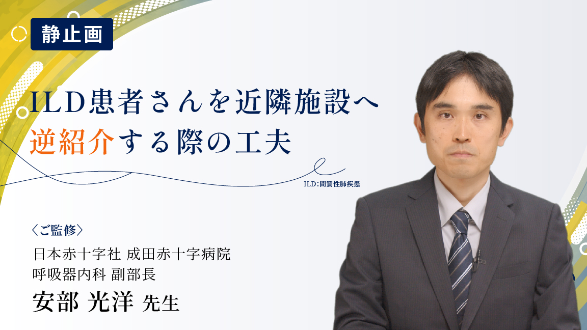 本コンテンツでは、ILD患者さんを近隣施設へ逆紹介する際の工夫について、日本赤十字社 成田赤十字病院 呼吸器内科 副部長 安部 光洋先生にうかがいます。