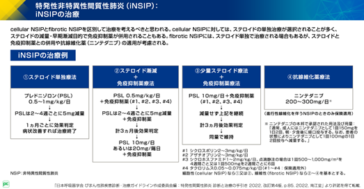 - 日本呼吸器学会 びまん性肺疾患診断・治療ガイドライン作成委員会編:特発性間質性肺炎 診断と治療の手引き 2022, 改訂第4版, p.167, 2022, 南江堂