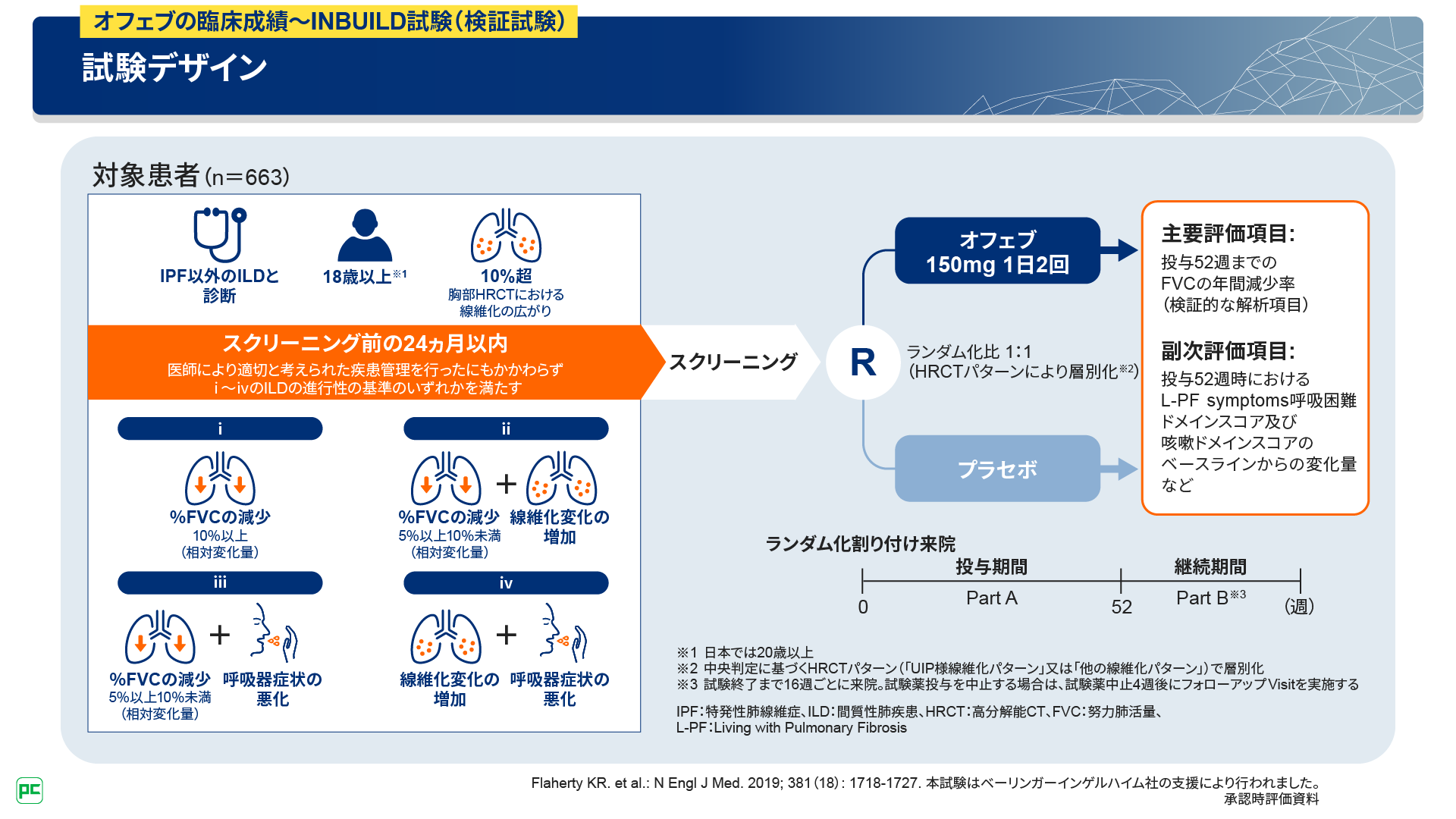 ここで、オフェブの国際共同第Ⅲ相試験 INBUILD試験についてご紹介します(図9)。