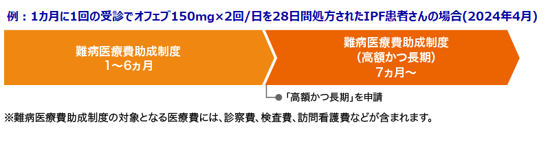図4 重症度Ⅲ〜Ⅳ度のIPF患者さんへのオフェブ処方の場合に活用できる公的支援制度のイメージ