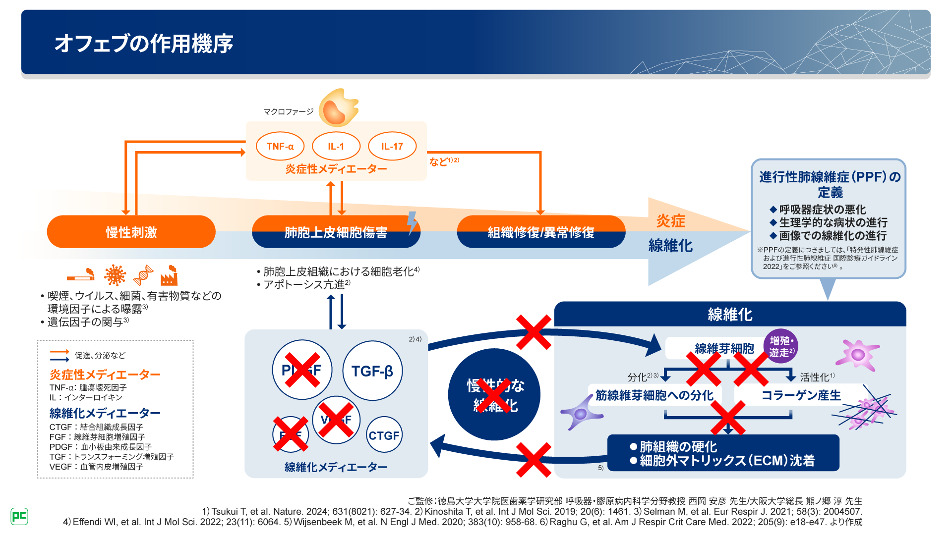 | 2011年以降: | 国際ガイドラインで抗線維化剤が取り上げられるようになりました6-8)。 |