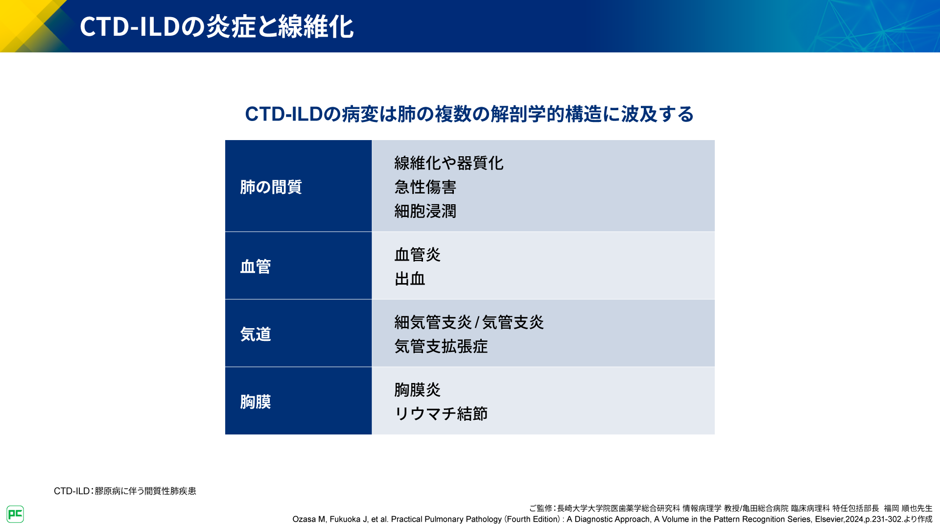 CTD-ILDの病態を理解することは、適切な治療選択のためにも重要です。
