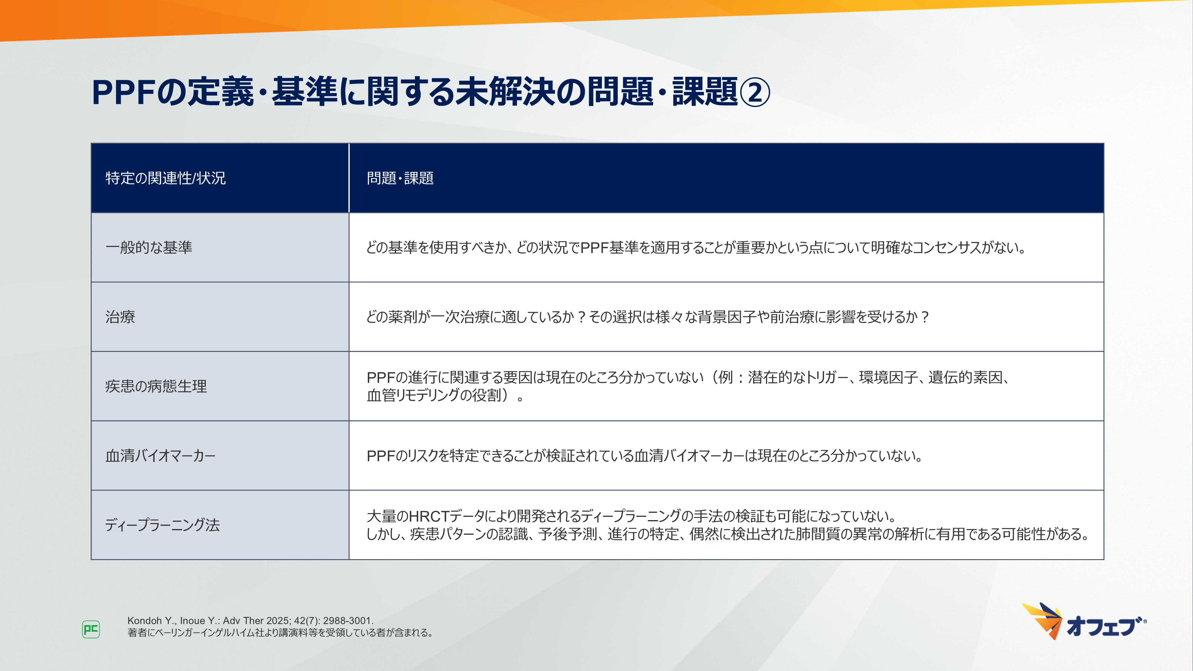 “PPF”の定義・基準に関する未解決の問題・課題を表に示します(図2)。