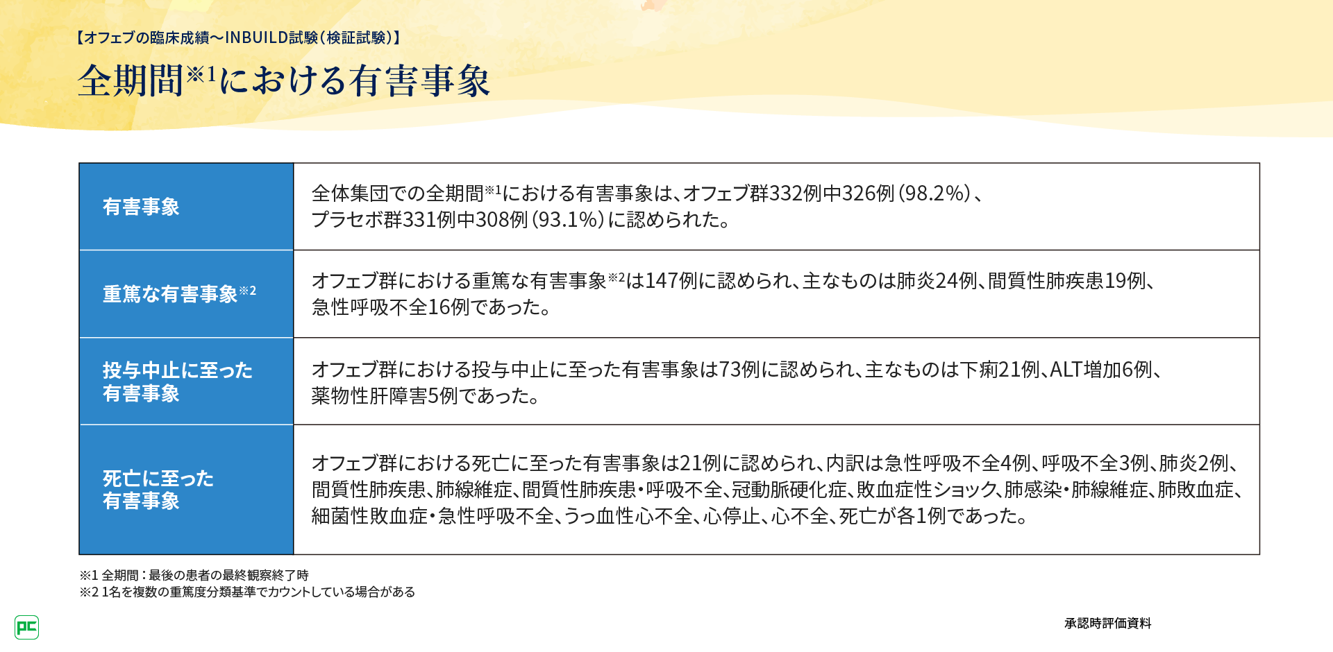 抗線維化剤オフェブは2015年に発売され、2020年に進行性線維化を伴う間質性肺疾患(PF-ILD)に対する適応を取得しました。