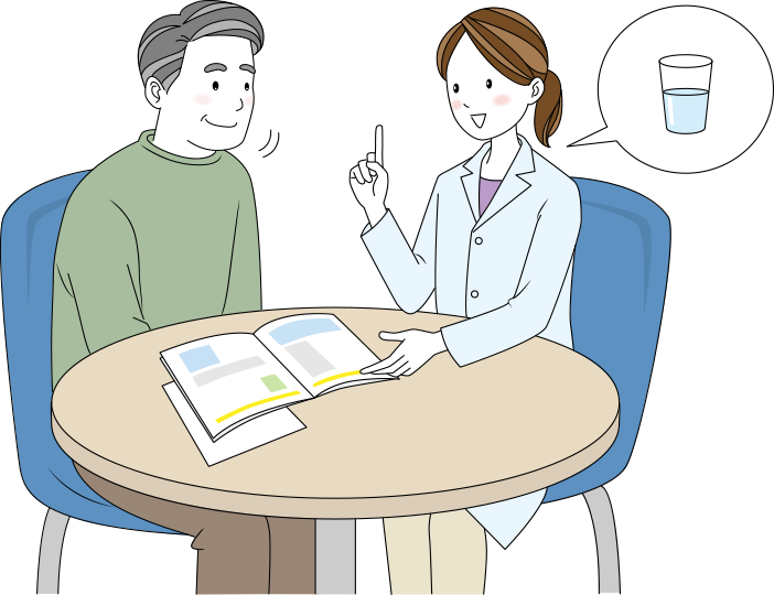 下痢がみられた場合は、便と一緒に水分も出てしまうため、水分補給を行うことが必要です。このとき、一度に水分補給をしてしまうと、満腹感が生じて食事が摂れなくなる場合があるため、こまめな水分補給をお勧めしています。また、1回の食事量を少なめにすることや、下痢を誘発するような揚げ物や刺激物などをやめることもお伝えしています。ご高齢の患者さんには天ぷらが好物の方も多く、より注意が必要だと感じています。