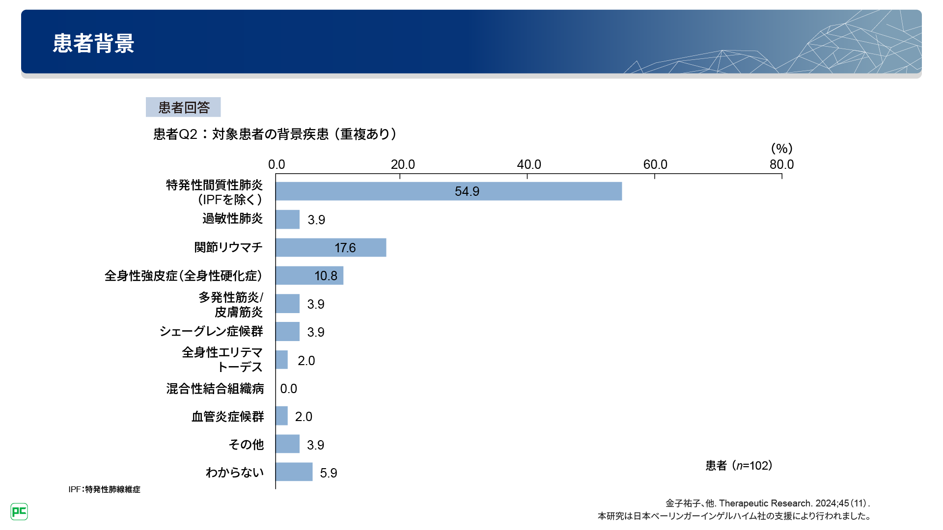 医師・患者アンケートから考えるPF-ILD/PPFの早期診断・治療介入の意義と課題(静止画)