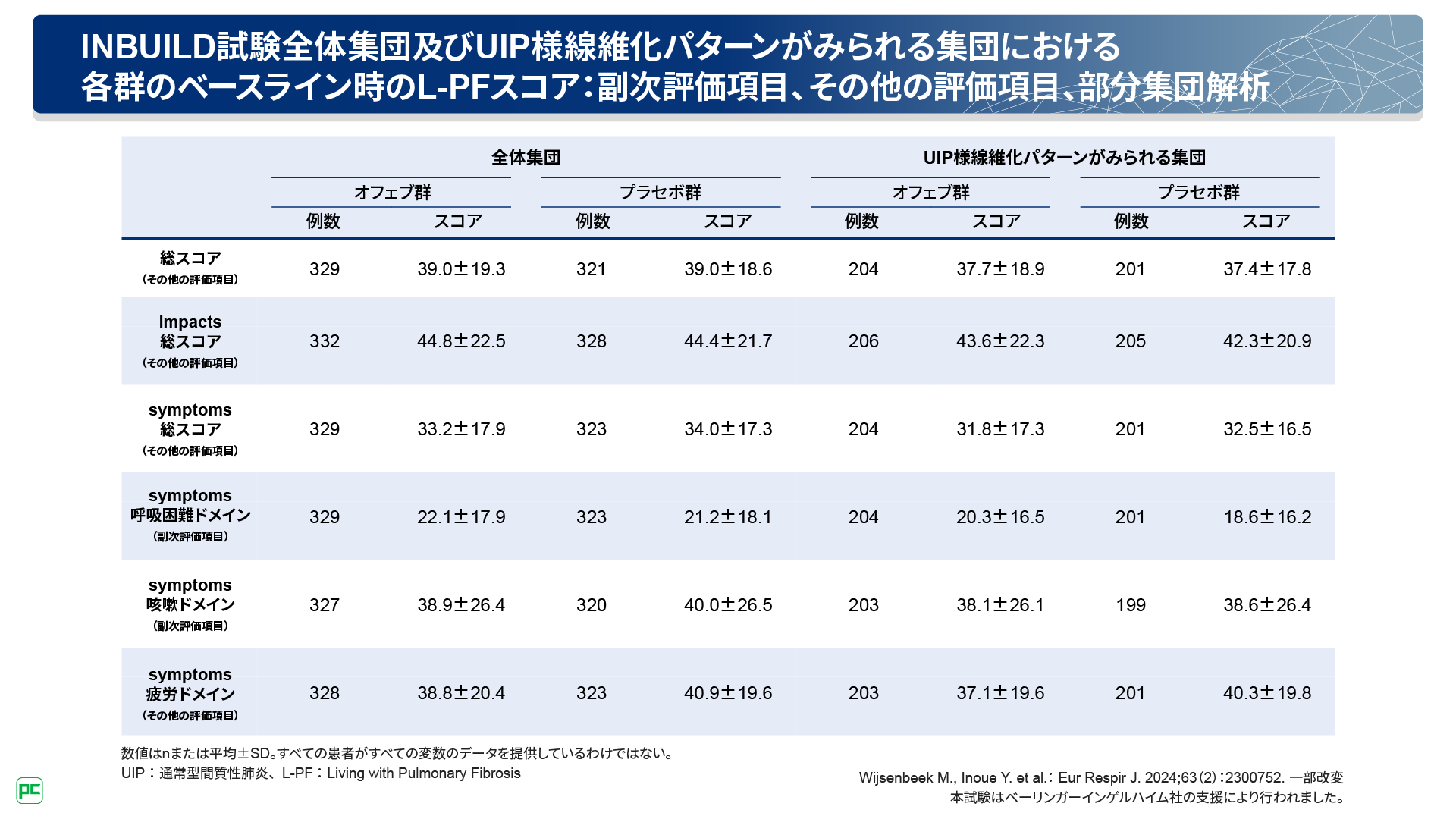 INBUILD試験 L-PFスコア