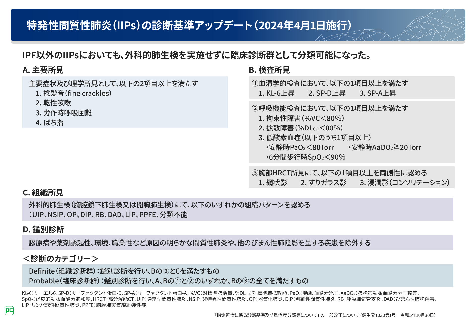最初に、2024年4月1日にアップデートされた指定難病としてのIIPsの診断基準について振り返ってみましょう。