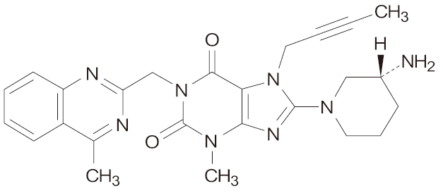 化学名:8-[(3R)-3-aminopiperidin-1-yl]-7-(but-2-yn-1-yl)-3-methyl-1[(4-methylquinazolin-2-yl)methyl]-3,7-dihydro-1H-purine-2,6-dione